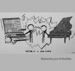 Tuvimos la oportunidad de entrevistar a Miguel López Mora y Ana Isabel Fernández, mejor conocidos como “Digital21” y “Ana Curra”, quienes desde hace un año conforman el dúo: “Digital21 vs Ana Curra”. Ambos son íconos de sus respectivas generaciones; Ana, fue una de las protagonistas de la escena musical durante la movida madrileña de los ochenta con el grupo “Alaska y los Pegamoides”, mientras que, Digital21, comenzó su carrera en los años noventa, siendo el pionero en España en mezclar instrumentos de música electrónica con instrumentos reales en vivo.